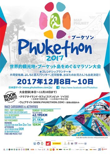 2017年12月8日〜10日に行われるプーケットマラソンに出させていただきます!ペナルティのワッキーさん、品川庄司の庄司さん、おばたのお兄さん、片岡安祐美さん、タイ人女優のパンケーキさん、ヨーヨットサバディーさんも出場されます! 膝や腰に爆弾を抱え…