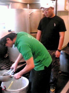 詳しくは今度発売の横浜walkerにレポートが載りますので是非そちらを見てくださいませ。 このテンボスラーメンはトータルさんが試行錯誤を繰り返し作りあげた一品でございます。夜な夜なお店をお借りして、何十時間もかけてスープを作ったりもしました。 僕も全身全霊を込めてお手伝いさせていただきました。 写真を見る限りでは中村屋の店員さんが一生懸命仕込みをしているのをただ見てるだけに見えますが、僕も一生懸命おいしいラーメンを作る為に奮闘しております。