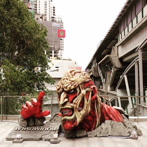 BTSの駅前に唐突に進撃の巨人の頭だけ出てたり、
