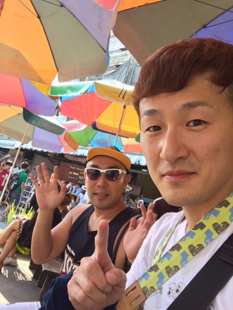 ロバートの馬場ちゃんがタイにいらっしゃいました。久々に会えて超嬉しいっす!!日本でちょくちょく会ってた方々もいらっしゃってるので、懐かしい感覚です。バンコクで会うのなんか不思議な感じしますがテンションあがるな~。お土産にサングラスもいただきました。ありがたやありがたや・・