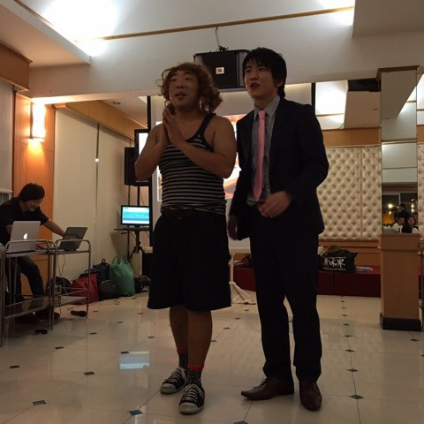 しかし、打ち上げは突如始まった別グループのカラオケ大会にかき消されました。写真は3曲連続で曲を入れ、熱唱するストロングハートなおじさん。